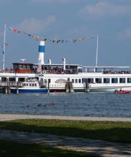 Haben Sie Lust auf eine Schifffahrt auf dem See? Auf dem Ammersee entdecken Sie die gute alte Zeit. Dem Charme der nostalgischen Raddampfer DIESSEN und HERRSCHING können Sie sich nicht entziehen. Sie werden von den eleganten Salons und vom rhythmischen Plätschern der Schaufelräder ganz begeistert sein. Versprochen! Belohnt wird Ihr Ausflug an den Ammersee mit einem wunderbaren Alpenpanorama.